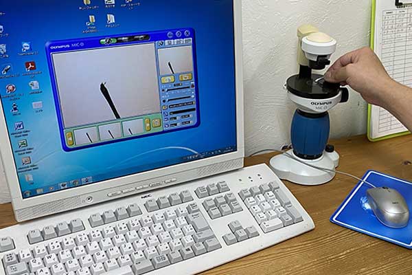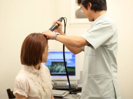 洗髪時に採取した毛髪の毛根を顕微鏡で調べます。頭皮の状態はマイクロスコープ画像で確認します。毛根や頭皮の状態から脱毛の原因を調べることができます。
